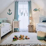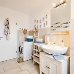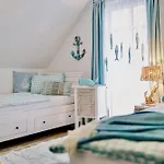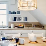 La propiedad dispone de una cocina completa y un comedor al aire libre y una zona de comedor. Los huéspedes que se alojen en el apartamento podrán disfrutar de la comodidad de tener a su disposición servicio de tetera/cafetera. La propiedad está situada a unos 5 minutos en coche del restaurante Ristorante Martini, que sirve comida mediterránea. El aeropuerto Rostock-Laage se encuentra a 95 km, mientras que la estación de autobuses Zingst EDEKA está a un par de minutos en coche del Ostseeblau.